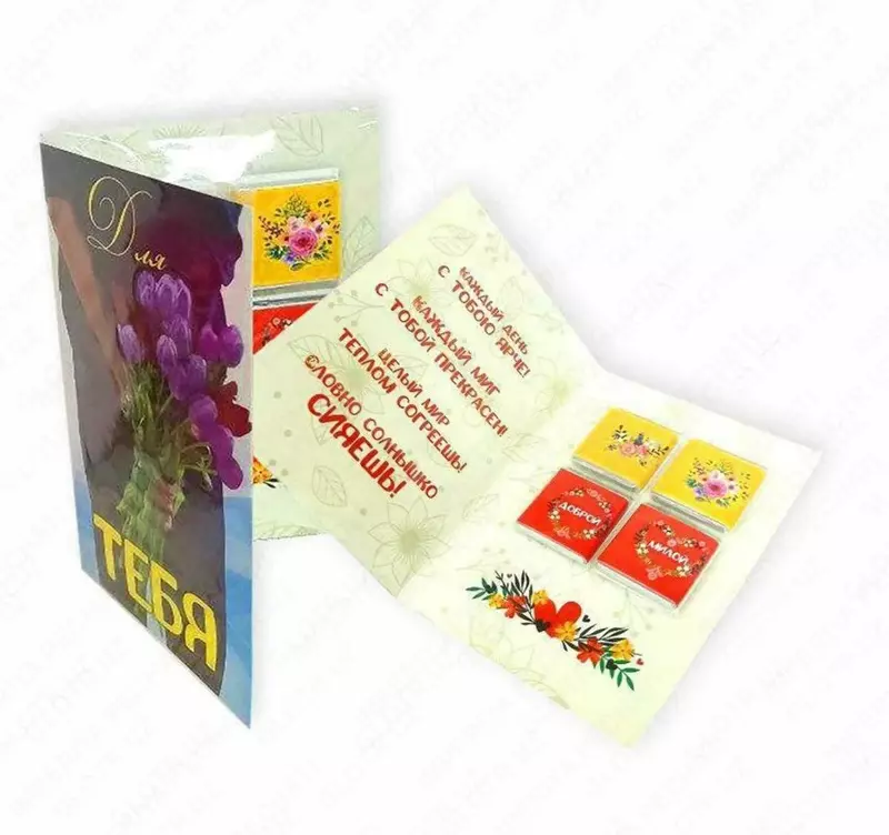Kolorit Print istaklar bilan sovg'a konfetlarini ishlab chiqarish bo'yicha xizmatlar ko'rsatadi.